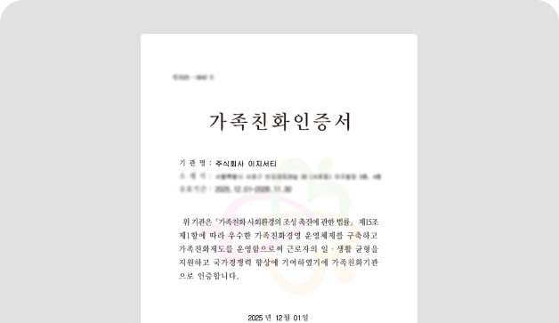 우수한 가족친화경영 운영체제를 구축하고 가족친화제도를 운영함으로써