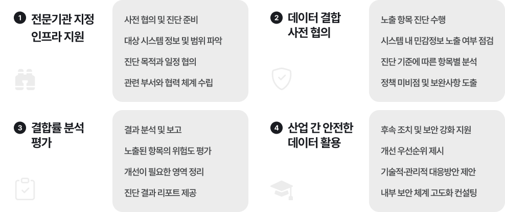 개인정보의 안전한 진단과 보호 체계 수립을 지원합니다.