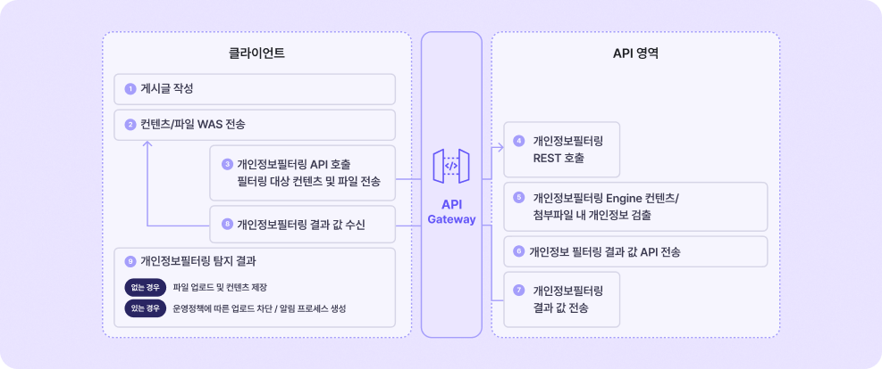 개인정보를 실시간으로 고정밀 탐지·차단합니다.